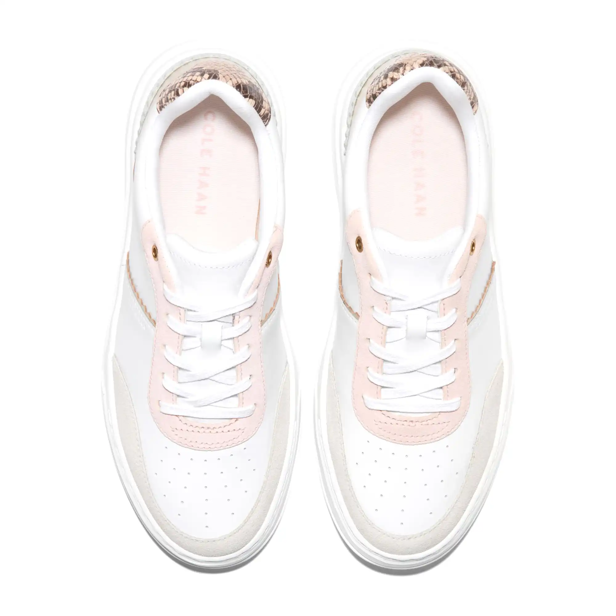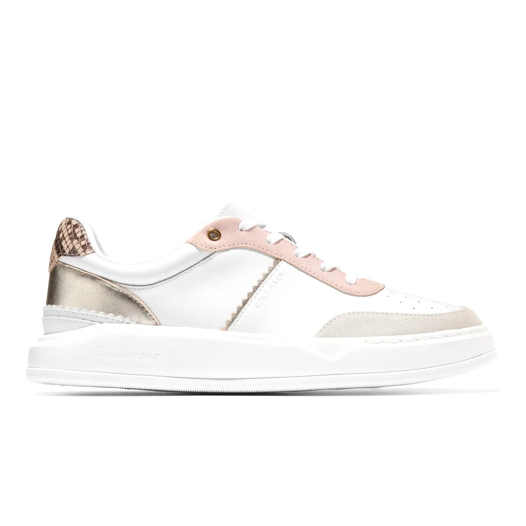 Grandpro Carissa Sneakers White Silver Birch Suede Soft Gold Cameo Rose Snake Print